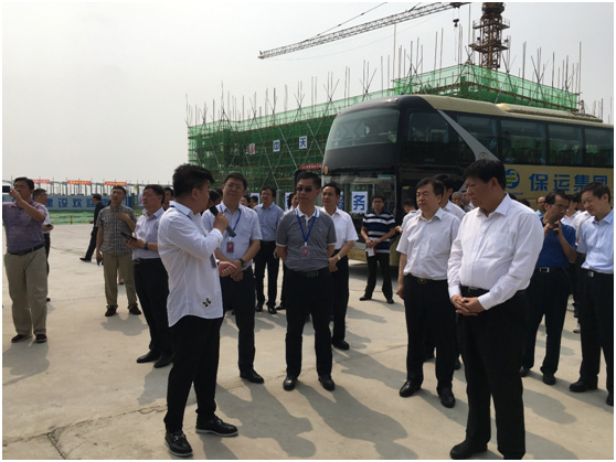科技成就事業,實干引領未來。在中國共產黨建黨97周年之際,7月1日,河北省委常委、常務副省長袁桐利帶隊河北省重點項目建設觀摩組,在保定市委副書記、市政府市長郭建英,保定市委常委、常務副市長李俊嶺等領導陪同下,重點圍繞華訊方舟集團中國天谷•河北太赫茲國際科技產業基地項目建設的新進展、新成效、新亮點進行現場觀摩調度。保定市徐水區委書記蘇樹鋒、華訊方舟集團高級副總裁丁慶、集團高級副總裁孫宏鶴、集團副總裁兼河北華訊天谷總經理彭輝熱情接待觀摩組一行。